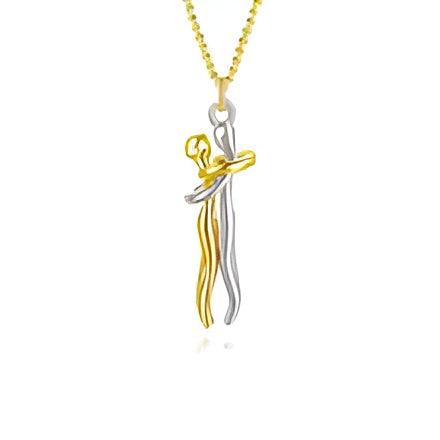 Ce collier représente deux êtres enlacés, unis par un lien invisible mais puissant.Il symbolise l’amour, la protection et la présence — même à distance.